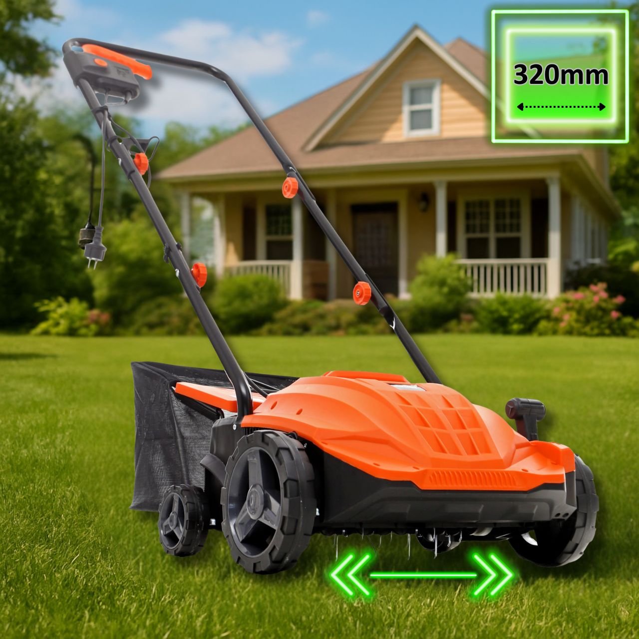 Szerokość robocza 320 mm pozwala efektywnie pracować w ogrodzie przydomowym, a jednocześnie zachować dobrą manewrowość.