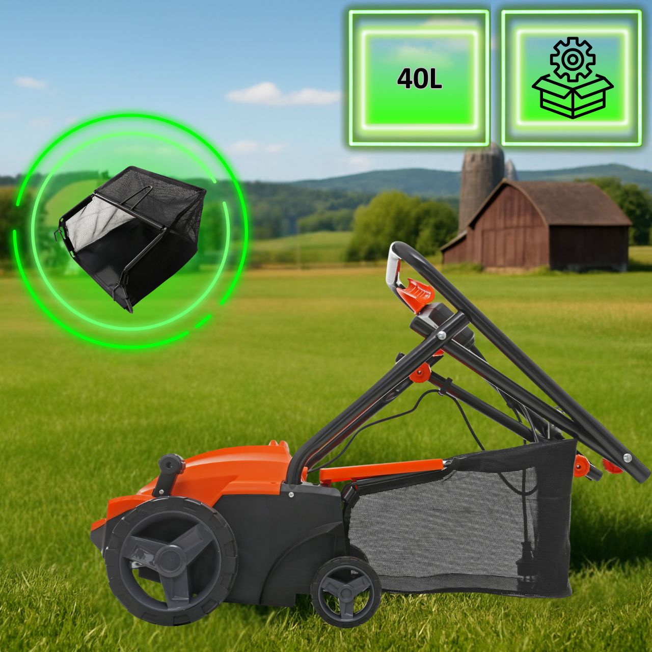 Kosz o pojemności 40 litrów pozwala zbierać mech i resztki trawy podczas pracy. Konstrukcja kosza: