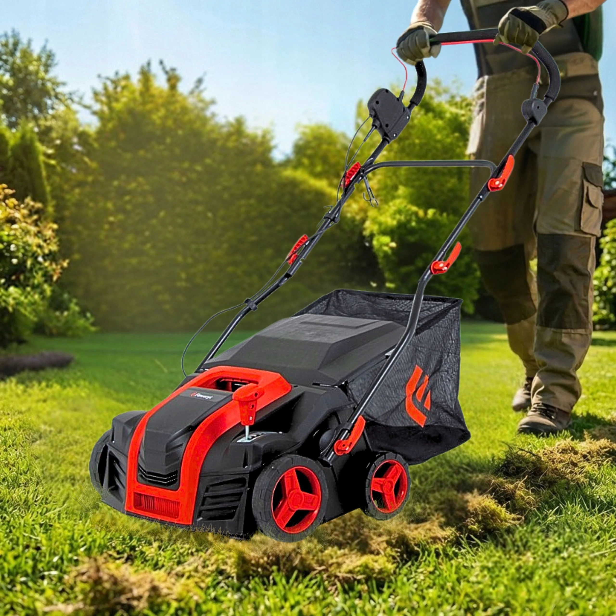 - Trzy funkcje w jednym urządzeniu: aeracja, wertykulacja i zbieranie do kosza