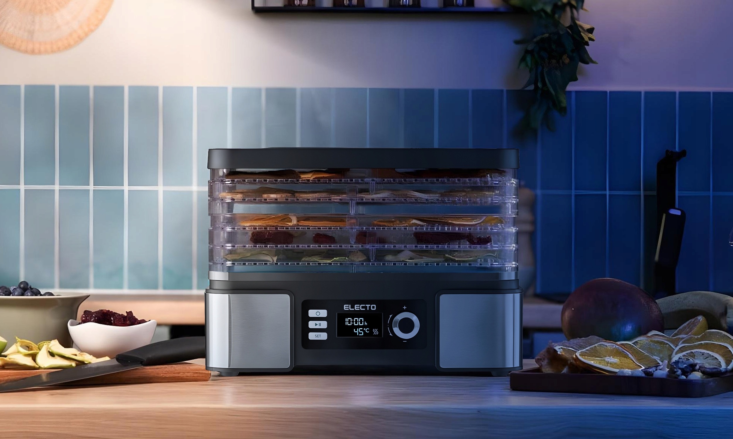 Chcesz zachować smak lata na dłużej i przygotowywać zdrowe przekąski bez konserwantów? Suszarka spożywcza Electo 500W z 6 sitami pozwoli Ci w prosty sposób suszyć grzyby, owoce, warzywa, zioła, a nawet mięso. Duża pojemność 12L, regulacja temperatury 35–70°C oraz timer 1–24 h dają pełną kontrolę nad całym procesem.