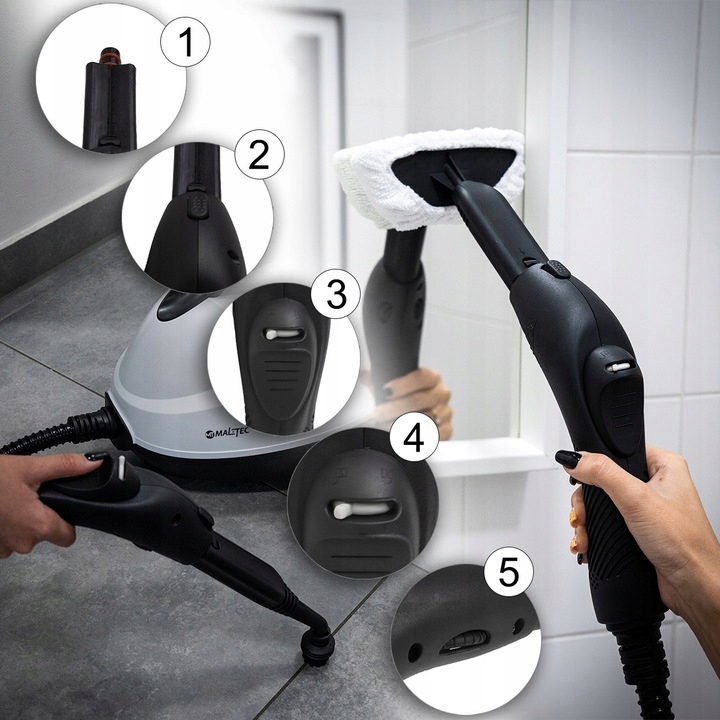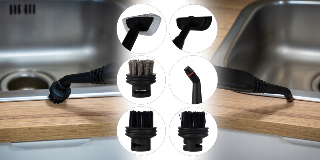 W praktyce oznacza to, że jednym urządzeniem wyczyścisz podłogi, okna, łazienkę, kuchnię, tapicerkę, dywany i trudno dostępne zakamarki, bez konieczności sięgania po dodatkowe sprzęty.
