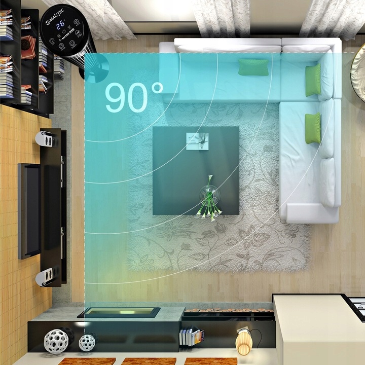 oscylacja 90°, dzięki której chłodne powietrze rozprowadzane jest równomiernie po całym pomieszczeniu