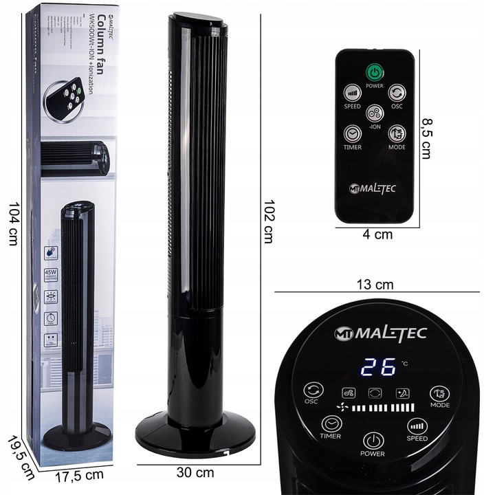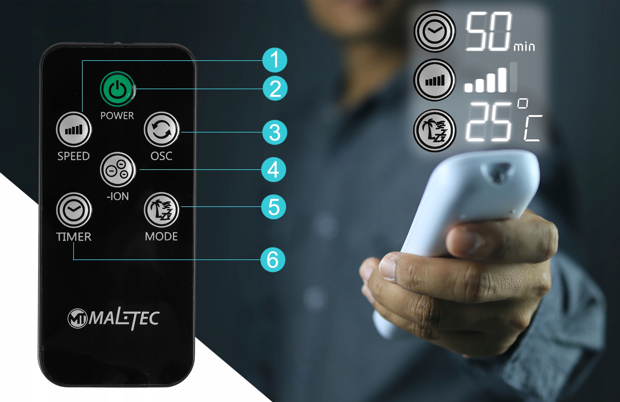 WENTYLATOR KOLUMNOWY PIONOWY WIATRAK PODŁOGOWY JONIZACJA CICHY MOCNY Maltec WK500Wt-ION daje Ci dwie opcje obsługi.