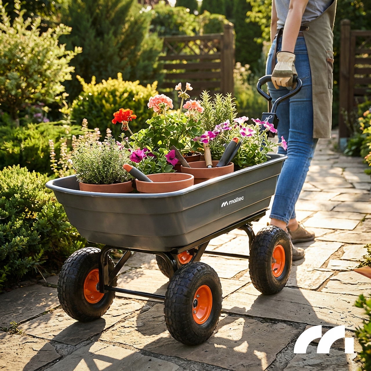 Wózek ogrodowy MalTec jest dokładnie takim sprzętem. To solidna, stabilna, wytrzymała wywrotka, która została zaprojektowana po to, aby odciążyć kręgosłup, przyspieszyć pracę i sprawić, że ogród wreszcie zacznie współpracować z Tobą, a nie przeciwko Tobie.