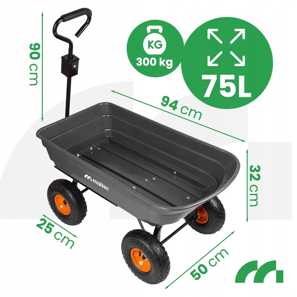 - Typ: wózek ogrodowy / transportowy / wywrotka