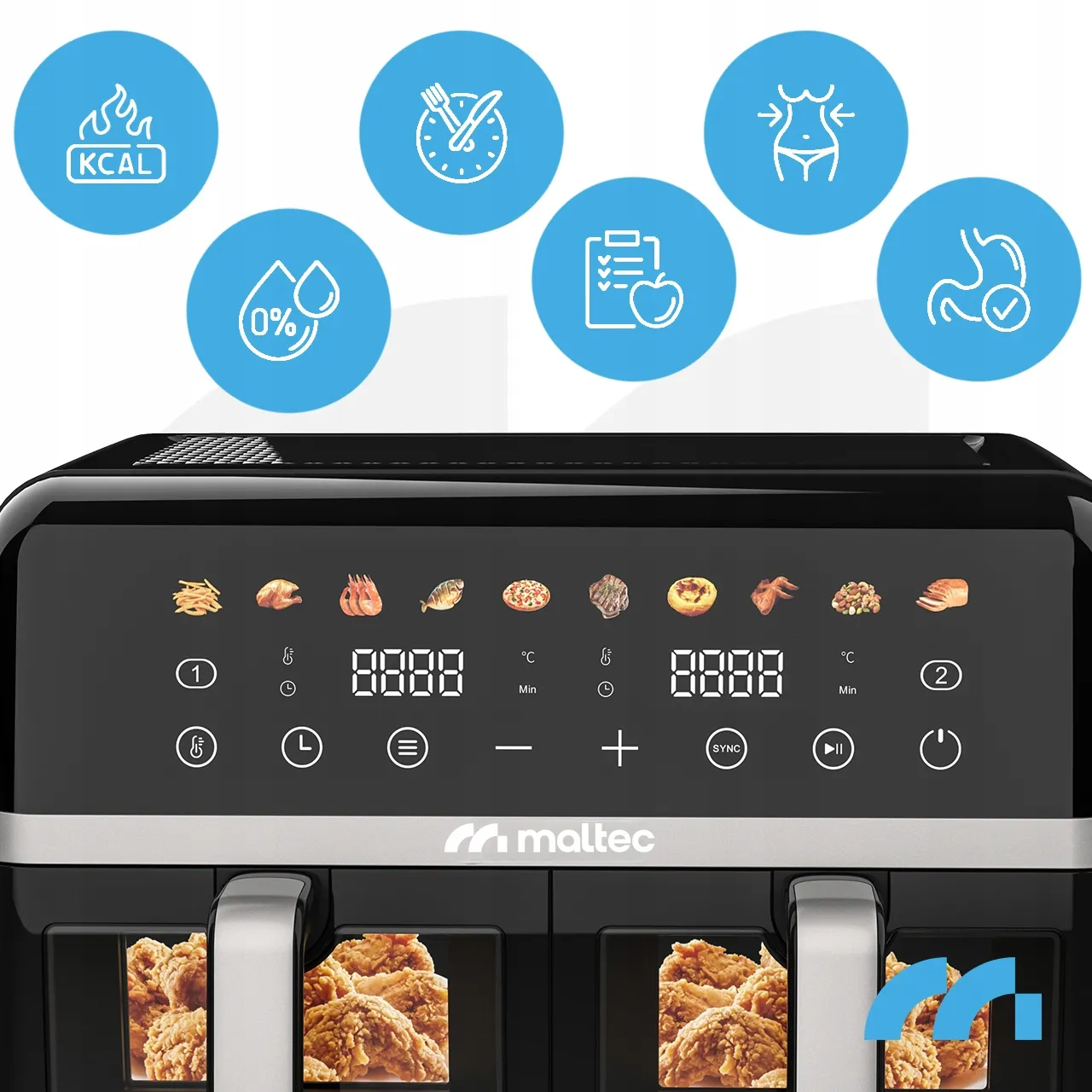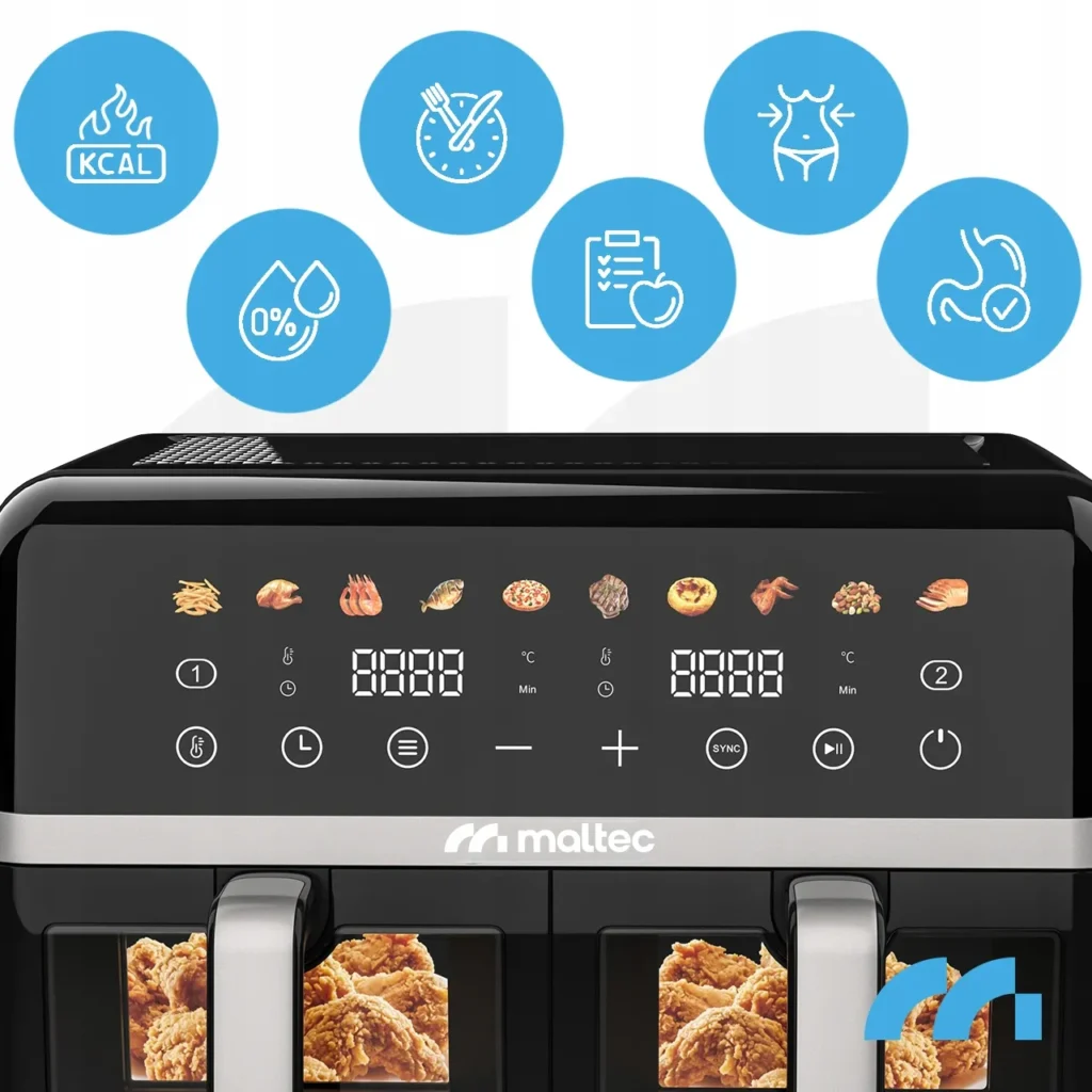 Frytkownica beztłuszczowa Maltec AirFryer2800W 10L – dwukomorowa moc 2800 W